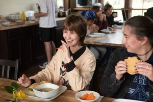 The dorm menu reflects both the preferences and tastes students bring from their home countries and menu items that expose students to different food traditions. Every effort is made to purchase local ingredients – produce, meat, fish, dairy, and grains – as freshness, health, and taste are a priority. Dorm parents design menus, purchase locally and prepare meals: breakfast, packed lunches, and dinner on weekdays; on weekends — brunch and dinner. Residential students are encouraged to help prepare meals and develop the menu – especially on weekends. Snacks are available in the student pantry at all times. While every effort is made to prepare meals that students like, the primary goal of our program is to meet their needs first, and their wants second. What this means in practice is students are exposed to different foods with an emphasis on health. Dinner is served family-style with students and dorm parents sitting down together in the dining room.